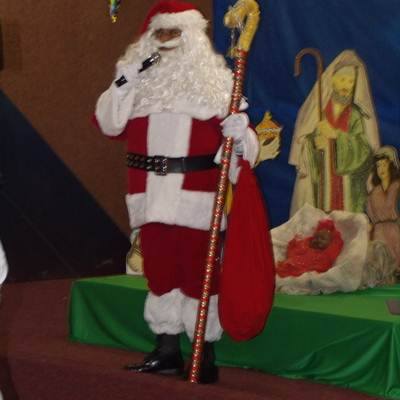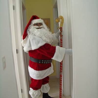 Para festas e apresentações em escolas, sítios, fazendas, clubes, piscina bar, escritórios e empresas em geral.(contém 11 itens: gôrro, gola, peruca, barba, bigode, casaca calça, cinto, polainas, cajado, saco de presentes (sem os presentes).