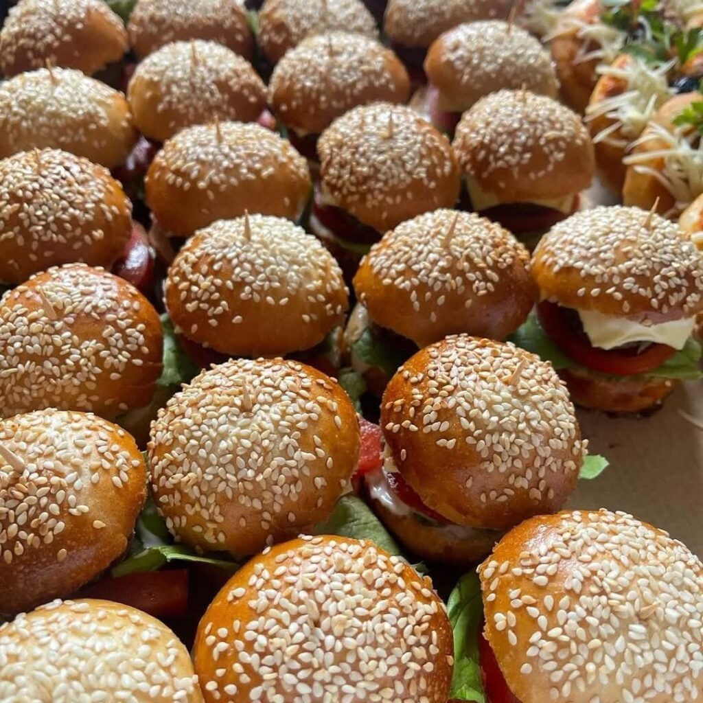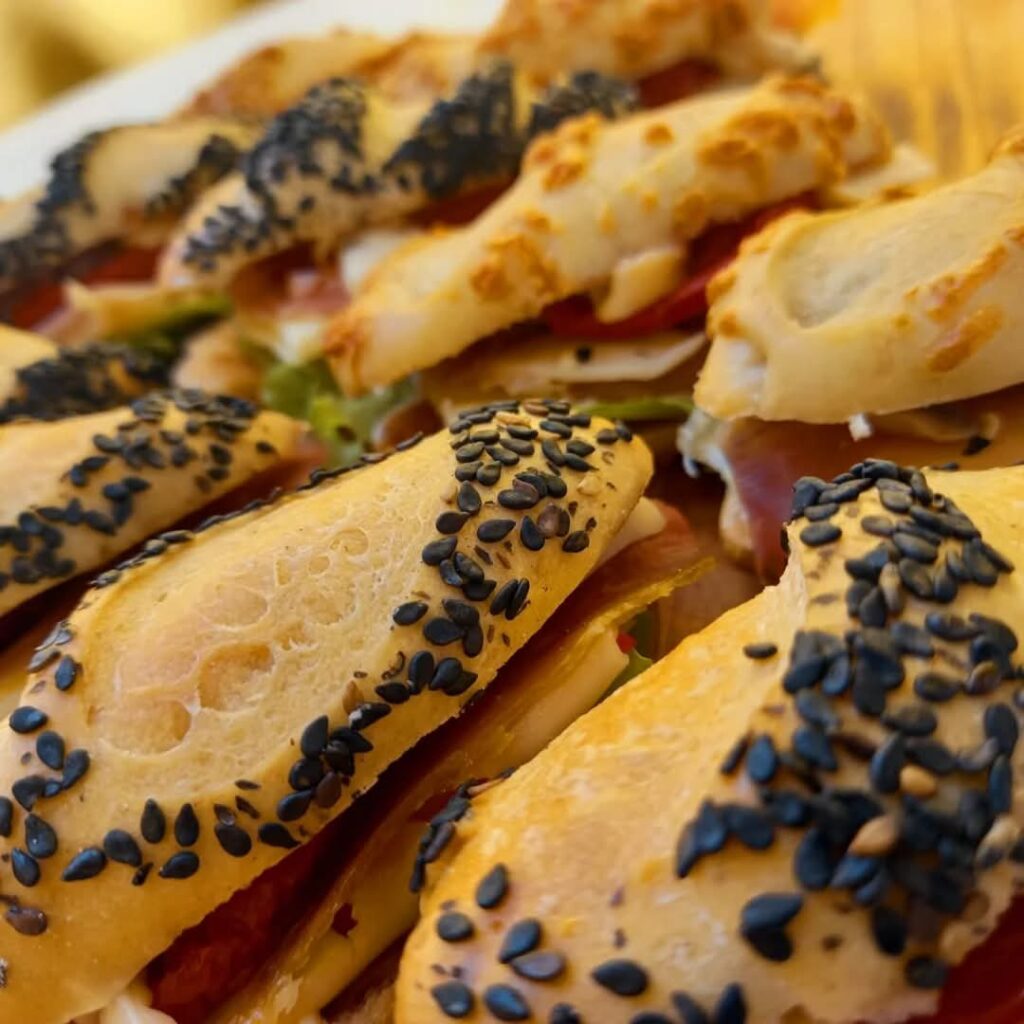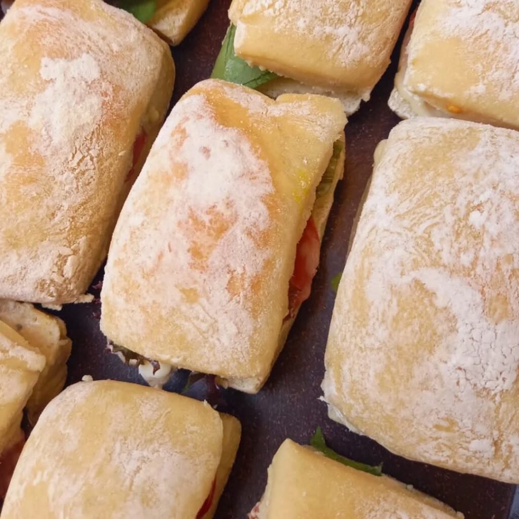 • Pães: Ciabatta, Baguete Francesa, Mini Baguete, Focaccia, Mini Hambúrguer, Mini Hot Dog, Longa Fermentação, Assados, Flores Orgânicas Comestíveis, Variedade de Produtos em Buffet de Alto Padrão.